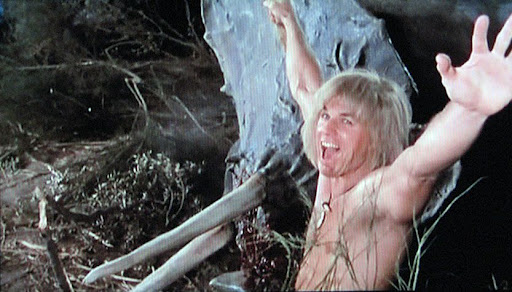 We follow Yor (Reb Brown) who appears to be an idiot, but is totally jacked. Reb Brown might be one of the worst actors ever, and this is one of many things that make this film oddly and unintentionally one of the funniest movies I have seen in a while. Brown openly laughs during scenes, can’t stop smiling, seems to forget dialogue, looks at the camera, goes the wrong direction and has to turn around, and yet it is still somehow watchable. After Yor saves Kalaa (Corrine Clery) and Pag (Luciano Pigozzi) they are all immediately best friends. Kalaa is immediately in love with Yor (as are all women in the film) and she becomes violently jealous at any other encounter–like murderously jealous.