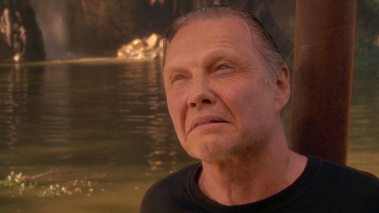 However, the most important cast member, psycho snake hunter Serone (Jon Voight) comes on board after his boat is marooned. Voight owns this role and is clearly having a blast. If nothing else, the film is great because of the faces he makes. He serves as the driving force to stop the search for the tribe and instead look for a big snake that would be worth a lot of money. Not sure where to put this, but Voight’s accent in this movie is a mixture of Tony Montana and everything in Deliverance. The show stealer is his fucking psycho face though: